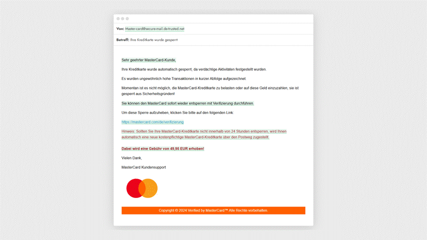Gefährliche Links, Anhänge, Downloads, Makros und QR-Codes (Quishing) sowie gefälschte Login-Seiten und Eingabemasken – Ihre Mitarbeitenden erkennen Phishing-Versuche über alle gängigen Vektoren hinweg.